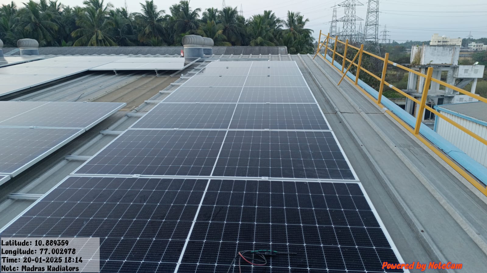 Improved Asset and Brand Value: The solar installation not only lowers operating costs over the long run, but also boosts Madras Radiators’ profile as a manufacturer that invests in sustainable practices—making its facility more valuable and attractive to partners who care about environmental responsibility.
