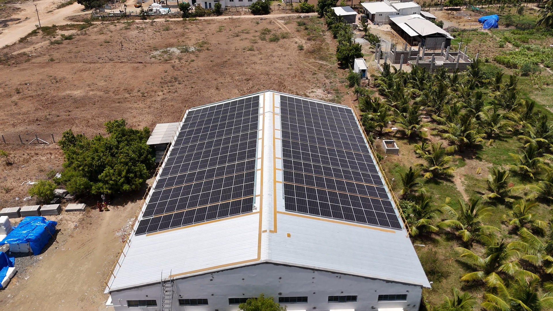 Vishnu Varathan Mills, operating 24/7 shifts with high energy demand (spinning, dyeing, finishing), decided to deploy a solar system on the rooftops of its factory buildings. They chose a Solis inverter for reliable, three-phase performance and paired it with Goldi 590 Wp high-efficiency panels to maximize output per square meter.